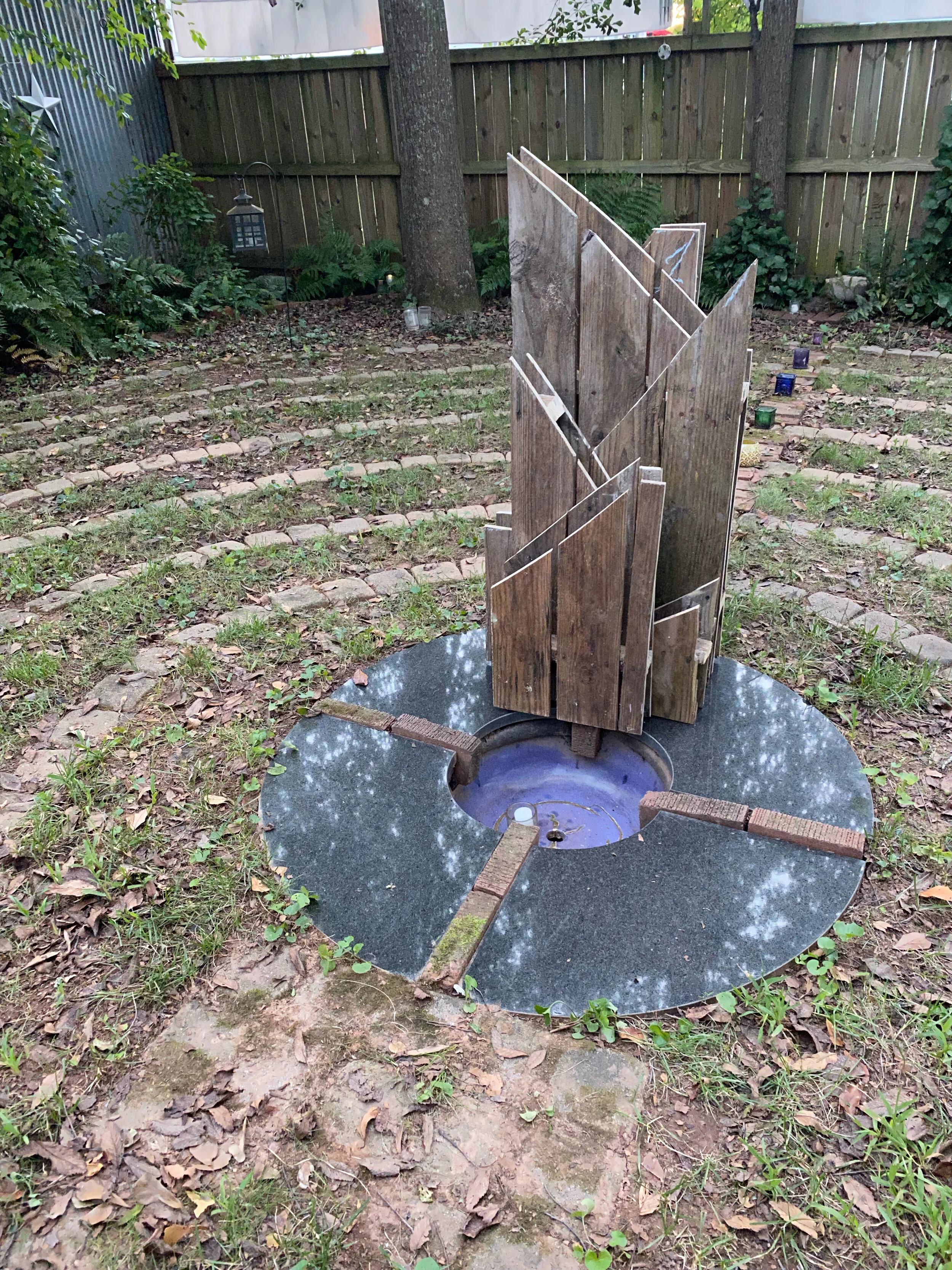 Because the labyrinth is on the Tour of Homes on Oct 15, there are several items that have been loitering about for a while that I need to clear out. One of them was a wooden pallet: